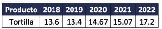 La producción de tortilla en México ha sido constante en la producción de tortilla6 .