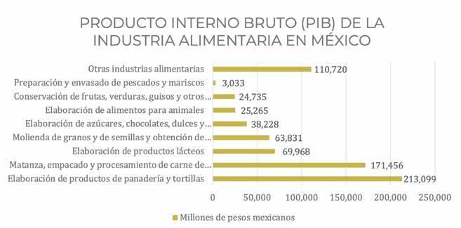 ¹⁶ INEGI. (noviembre ²², ²⁰²³). Producto interno bruto (PIB) de la industria alimentaria y de las bebidas en México en ²⁰²², por sub-industrias (en millones de pesos mexicanos) [Gráfica]. In Statista. Recuperado el ²⁷ de noviembre de ²⁰²³, de https://es.statista.com/estadisticas/⁵⁷⁹³²⁴/pib-industria-alimentos-bebidas-por-subcategoria-mexico/