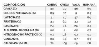 Cuadro 1. Comparación de la composición nutrimental de leche de Cabra y otras fuentes