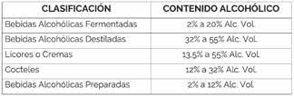 Tabla 1. Clasificación general de Bebidas Alcohólicas.