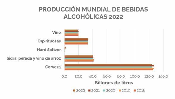 La cerveza, catalogada como la bebida alcohólica más consumida a nivel mundial, ostenta también el liderazgo en términos de ingresos, generando aproximadamente 569.000 millones de dólares estadounidenses para la industria global en 2022. En la segunda posición se ubican las bebidas espirituosas, que incluyen ron, vodka y whisky, con alrededor de 486.500 millones de dólares. Completando el podio se encuentra el vino. La industria a nivel global genero aproximadamente 1,488,990 Billones de dólares12.