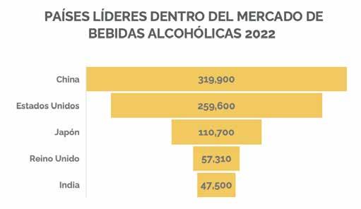 La industria global de bebidas alcohólicas está marcada por un claro liderazgo, donde China encabeza la lista con ingresos de 319,900 millones de dólares en 2022, seguida de Estados Unidos con 259,600 millones. Japón ocupa el tercer lugar con 110,700 millones, seguido por el Reino Unido (57,310 millones) e India (47,500 millones). Estos datos no solo reflejan la diversidad de preferencias de los consumidores a nivel mundial, sino también la importancia económica y cultural de las bebidas alcohólicas en diferentes regiones3.