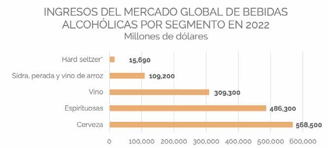 Fuente: Statista - Ingresos del mercado de bebidas alcohólicas a nivel mundial en 2022, por segmento