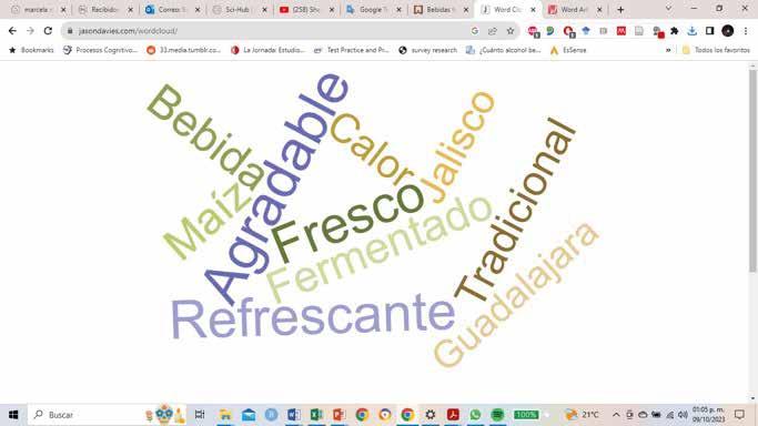que representa el tejuino para la población. En ese sentido, la definición de un concepto entre la población, representa el conocimiento así como el comportamiento que se tiene sobre el término en cuestión (Moscovici, 1988). La conformación de dicha definición está dado por ideas conceptos, imágenes o valores, matizadas por el factor cultural, por lo que está basada en el lenguaje común de la gente (Farr, 1984). Es por ello que recientemente se llevó a cabo una encuesta para conocer la percepción del consumidor sobre esta bebida. Los resultados mostraron que se generaron un total de 1600 palabras y 145 diferentes tipos.