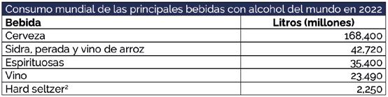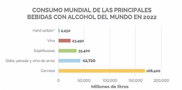 Consumo mundial de las principales bebidas con alcohol del mundo en 2022