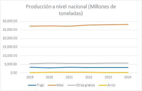 - Trigo 7,839.83 millones de toneladas 13 % del consumo nacional.