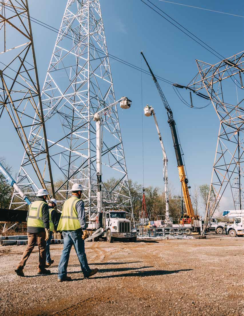 On the cover (left to right): Robert Switzer, Josh Gale, and Joe Schackart are pictured at a job site in Ohio where the power and energy team is completing a rebuild of over 4 miles of 138 kV transmission line.