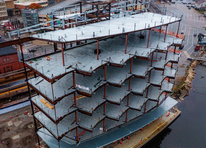 A/Z and its partners have navigated unique challenges, including building a new bulkhead to expand the pier and elevate the foundations above the floodplain. The museum’s structure was reinforced with steel micropiles, while the bulkhead was formed with sheet piling. Special materials also protect the river’s ecosystem from debris. Located between Union Station and two ferry landings, A/Z is coordinating construction around transit schedules to prevent disruptions.