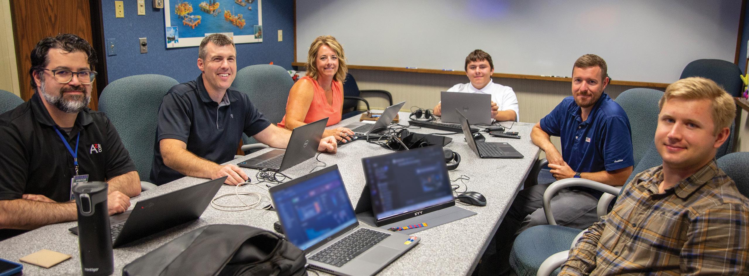 The IT Risk Management team led the effort to achieve Cybersecurity Maturity Model Certification for The Cianbro Companies. Pictured left to right: Christopher Johnson, Aaron Gibbs, Kelly Gumprecht, Chris Johnson, Jeremy Ladd, and Travis Nadeau