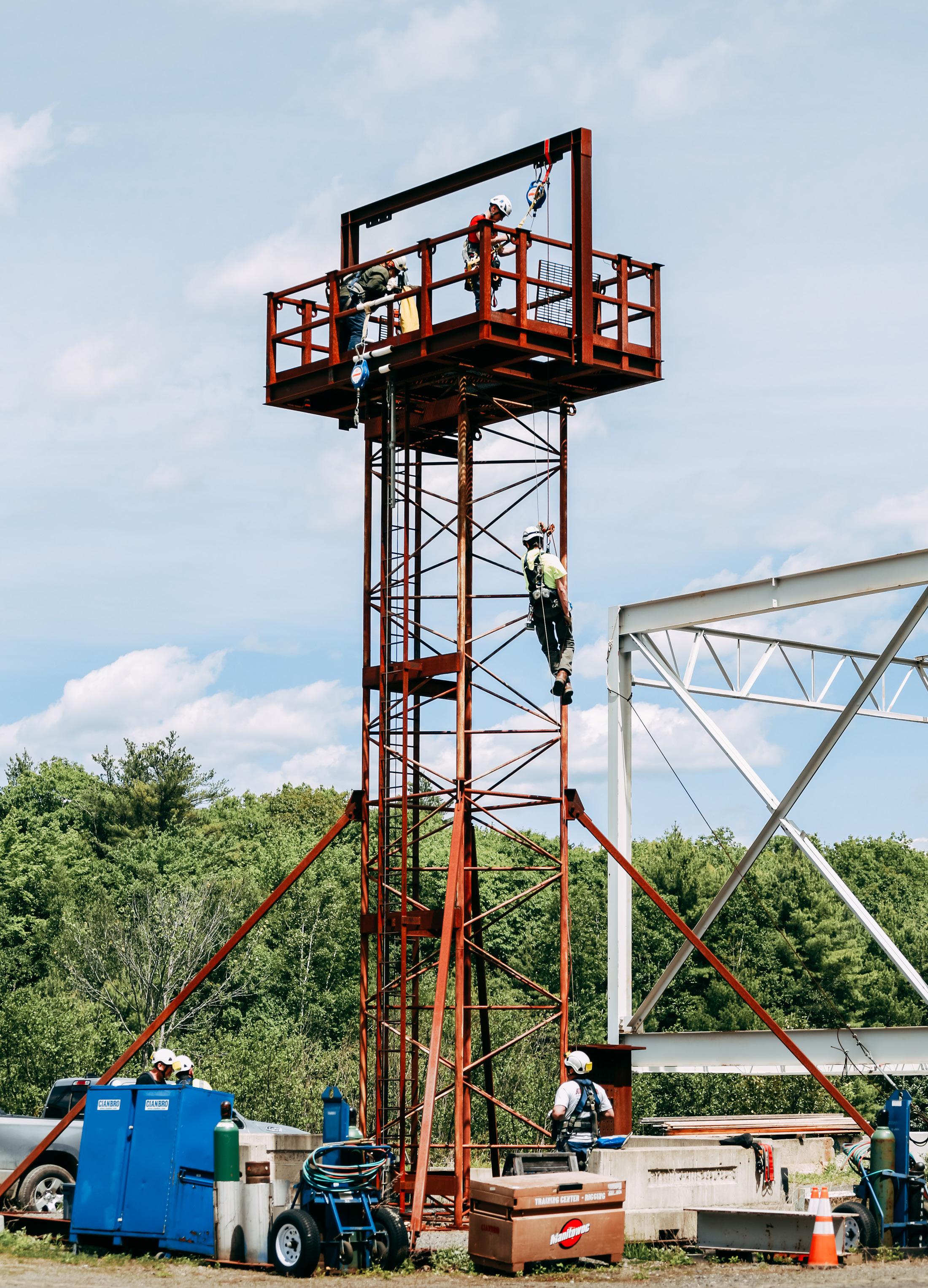 Keeping team members safe on projects while working at high elevations takes planning. A rescue team is needed to respond to emergency situations at a moment’s notice. Projects needing high angle rescue teams include wind tower erections, stack work, steel erections, and bridges. Ideal candidates are physically fit and unafraid of heights. Rescue topics cover rope usage, knot tying, anchor points, self-rescue, repelling, and rescue of others. Rescuers receive an annual refresher.