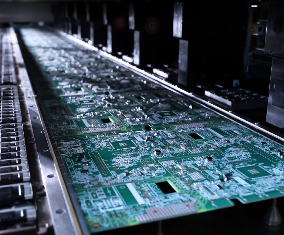 High-speed, precision SMT placement for single or double-sided PCBs.