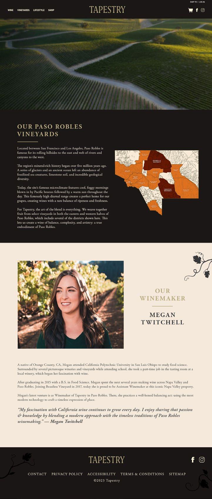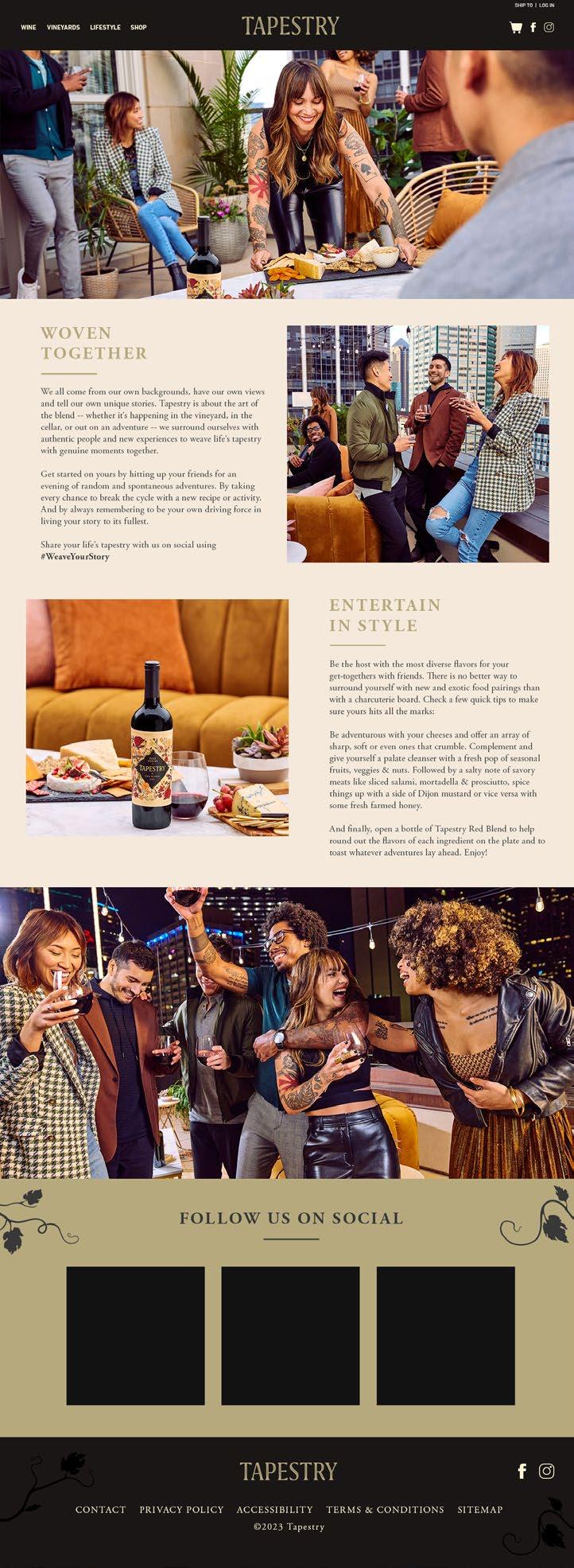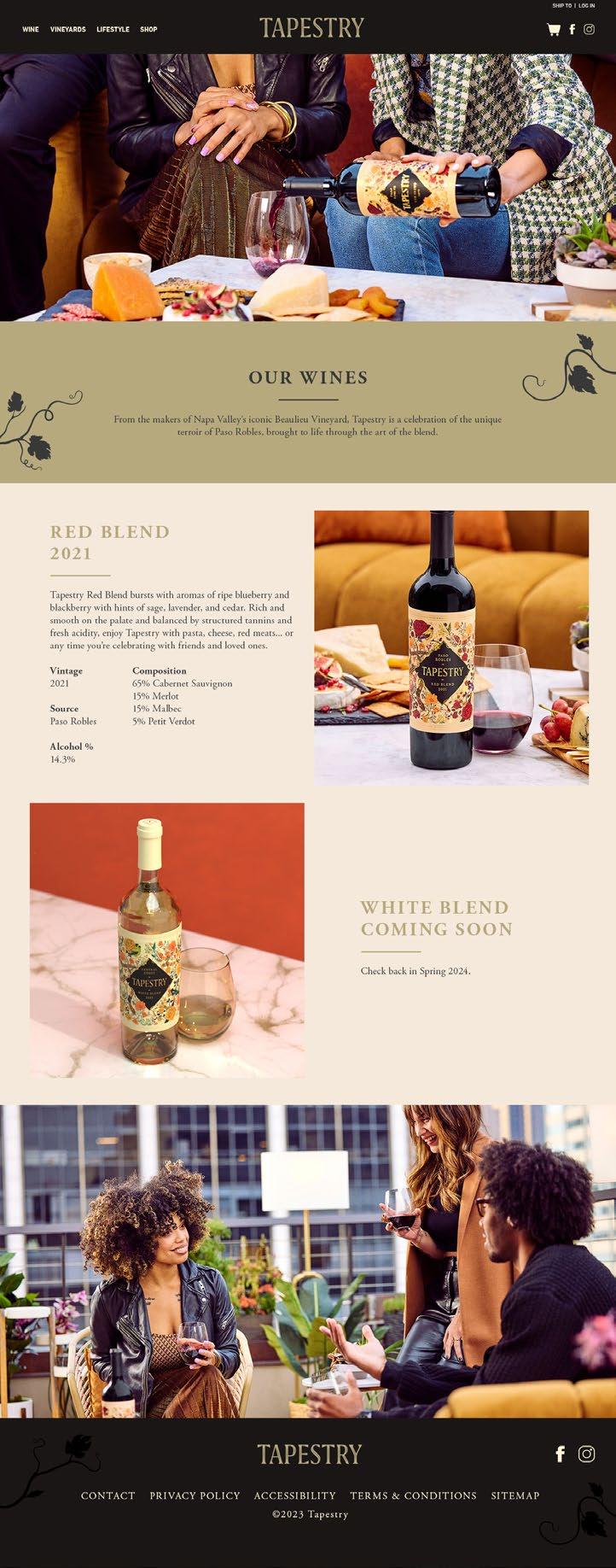 • Helped launch the Tapestry wine brand by art directing new lifestyle photography and building website layouts in 2023