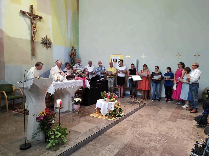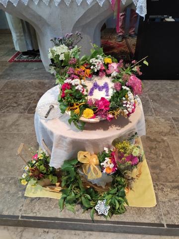 Do la santa mëssa dla comunité zelebrada da don Andrea, é la festa jüda inant cun n bun aperitif lunch acompagné dala musiga da festa di “Turmbläser” da Badia