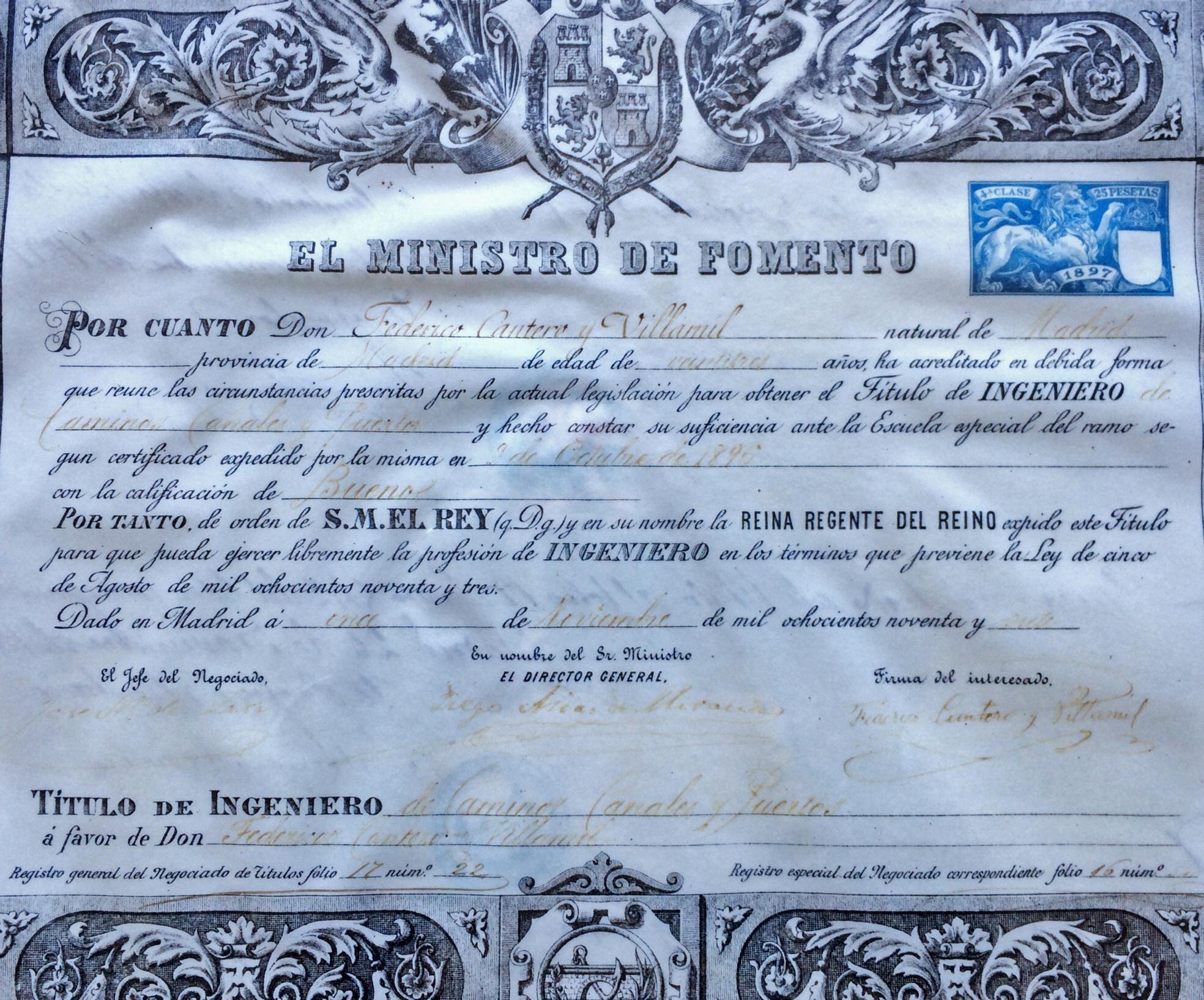 Nace Federico Cantero el 22 de Junio de 1874 en el nº 6 de la madrileña calle de la Libertad La elección de su figura como protagonista en la Semana de Ingeniería de Caminos en Madrid (SICMA 2017) no responde a la conmemoración de una cifra redonda de su nacimiento ni de ninguna otra fecha significativa en su devenir vital Es más bien una respuesta a la inquietud de la Demarcación de Madrid del Colegio de Ingenieros de Caminos por dar a conocer la figura y la obra de importantes personajes que ejercieron esta noble profesión a lo largo de más de dos siglos de existencia, especialmente en sus primeros años, aquellos en los cuales la sólida formación adquirida por los ingenieros, constituyó la base del conocimiento y también la iniciativa necesarios para acometer multitud de proyectos, cuya contribución a la modernización de una España de escasos recursos e incipiente desarrollo tecnológico está fuera de toda duda