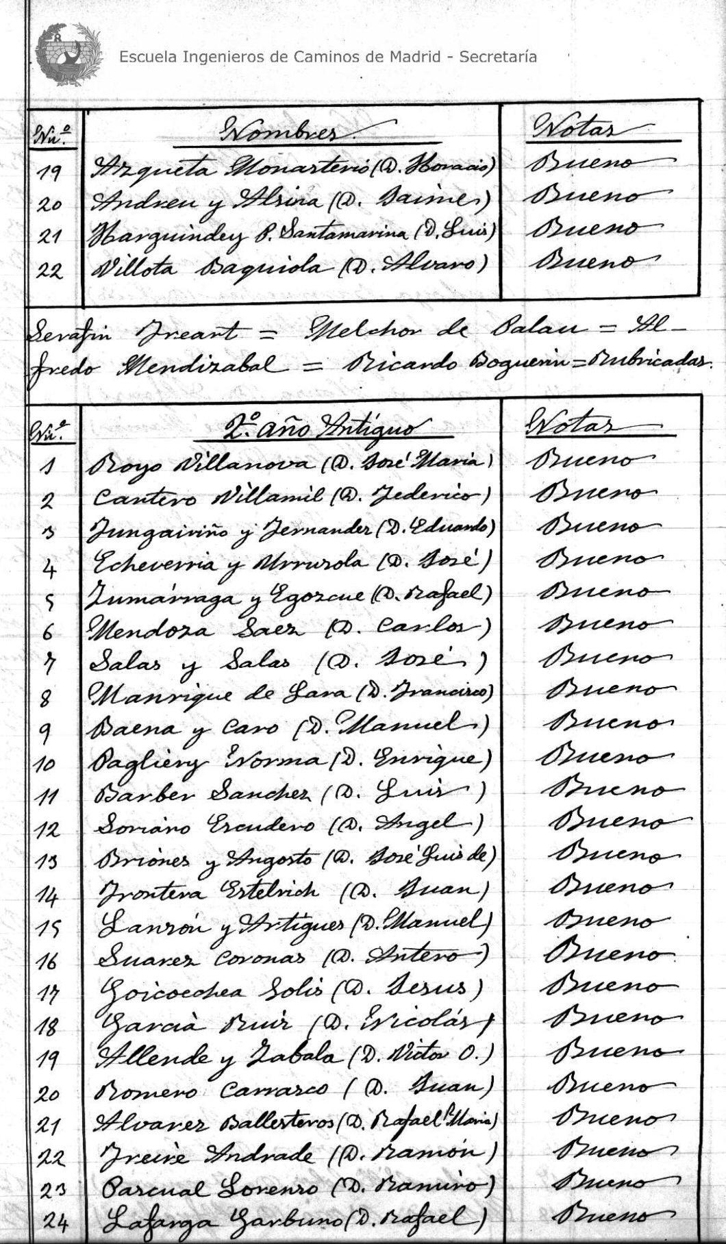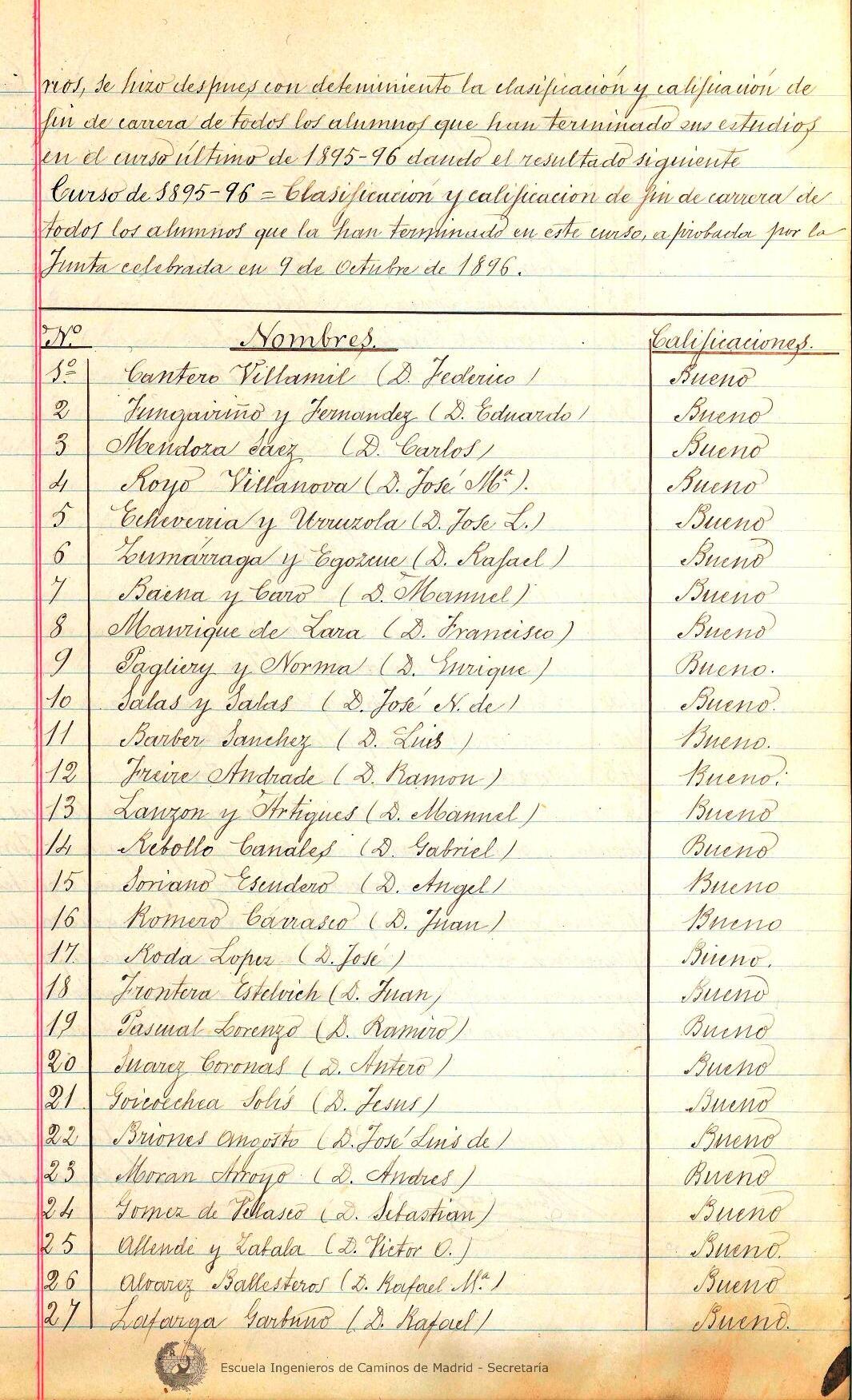 “Relación nominal de los Ingenieros de Caminos que terminaron sus estudios en los años 1839 a 1898”, Revista de Obras Públicas Nº extraordinario, 1899