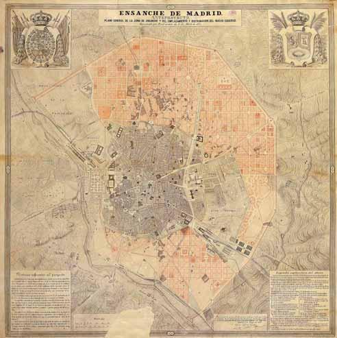 El Ensanche de Madrid se debe a Carlos María de Castro,cuyo proyecto,sin ser tan ambicioso como el de Cerdá para Barcelona,permitió triplicar la superficie de la ciudad,creando los nuevos barrios de Argüelles,Chamberí,Retiro y Salamanca. Los límites pasaron del Boulevard a la Ronda.En su trazado se respetaron algunos viejos pasajes y caminos como los de Fuencarral,Hortaleza o Alcalá.Otras actuaciones posteriores del propio Castro fueron la urbanización parcial de la montaña del príncipe Pío y el adoquinado del casco urbano.