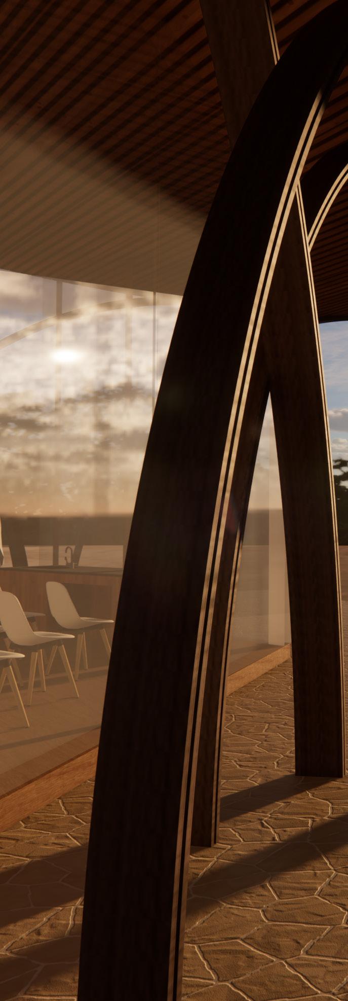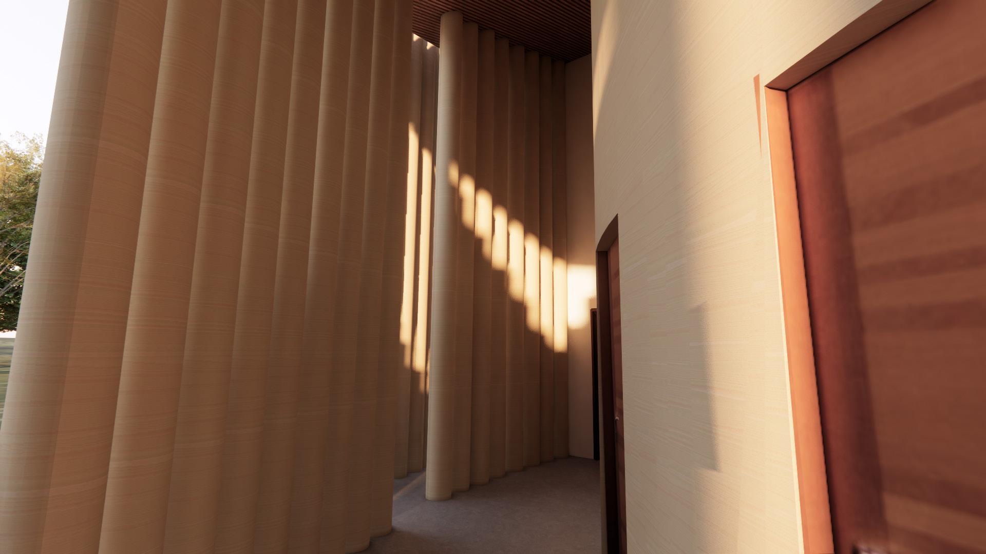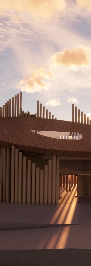 The non-denominational chapel at Pioneer Cemetary serves as a spatial embodiment of sound, a universal language that transcends cultural and religious boundaries. Rather than privileging a single tradition, the architecture draws on rhythm, harmony, and resonance to create an environment that invites collective contemplation. The form and materiality of the chapel amplify natural acoustics, allowing silence, prayer, spoken word, and music to hold equal presence. Light is carefully orchestrated, guiding visitors through moments of seclusion as well as openness throughout the day. By utilizing sound as the unifying theme, the chapel becomes a sacred space for all—where differences converge into harmony and diverse spiritual expressions find comfort in a shared human experience.