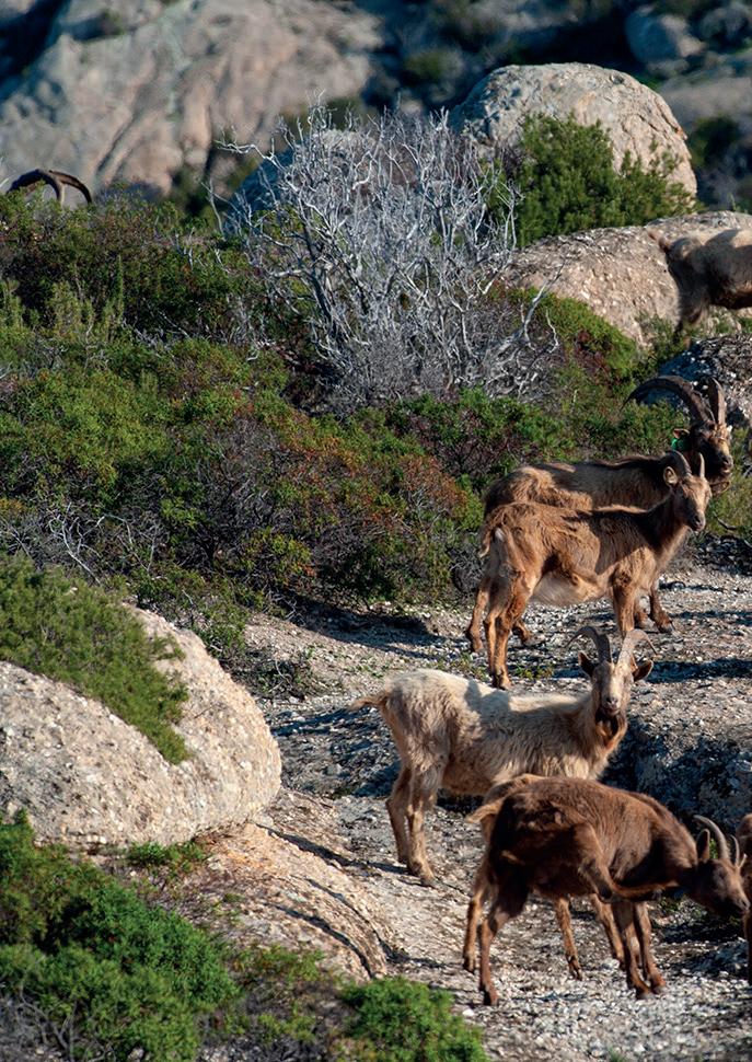 La capra selvatica è originaria di ambienti montani, impervi e rocciosi, con vegetazione di boscaglia o ad arbusti sparsi intercalati a praterie aride e pietraie. La popolazione di Montecristo è perfettamente ambientata nell’habitat spiccatamente rupicolo dell’isola, dove la vegetazione arbustiva è in prevalenza rappresentata da erica (Erica arborea e Erica scoparia) , rosmarino (Rosmarinus officinalis) e cisto (Cistus monspeliensis) , con presenza abbondante di ailanto (Ailanthusaltissima) , specie arborea introdotta nel XIX secolo dall’Estremo Oriente (Fig. 5).