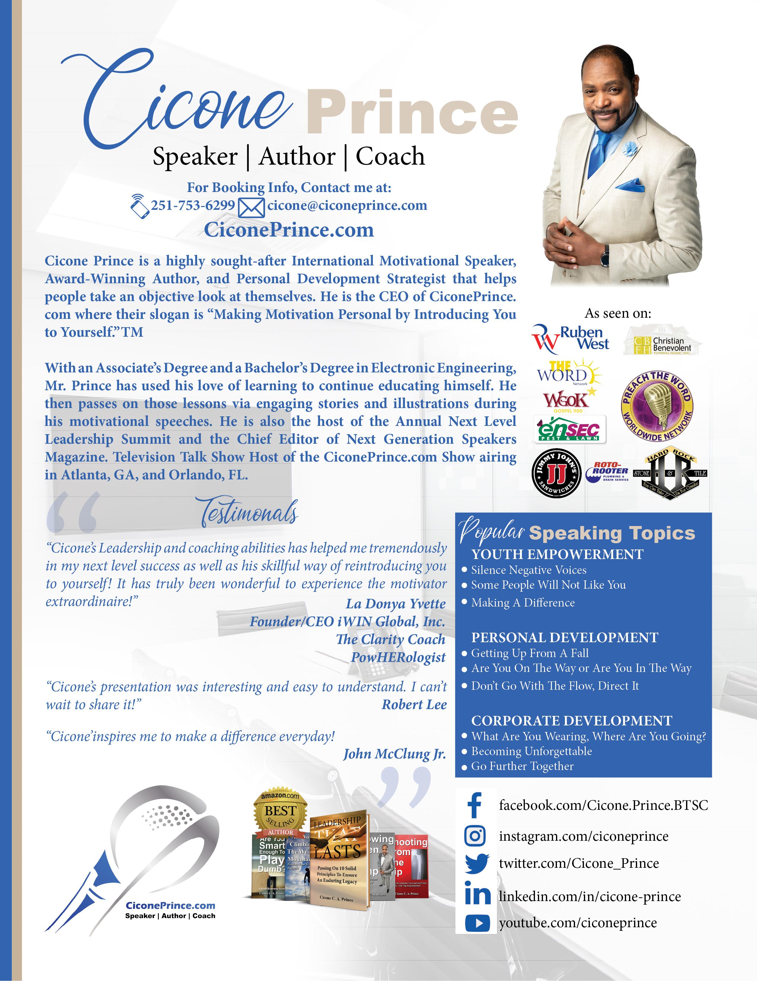discovery guide to healing your Inner Child. This book has been years in the making, and Cicone recently realized that introducing you to yourself was could not be complete without the introduction to your Inner Child. So many of us have been fighting our Inner Child, pacifying our Inner Child, or even worse, ignoring our Inner Child. Cicone wants to walk you through a process of making Peace with your Inner Child in order to help you develop into a person that can thrive in any environment and then teach others to do the same.