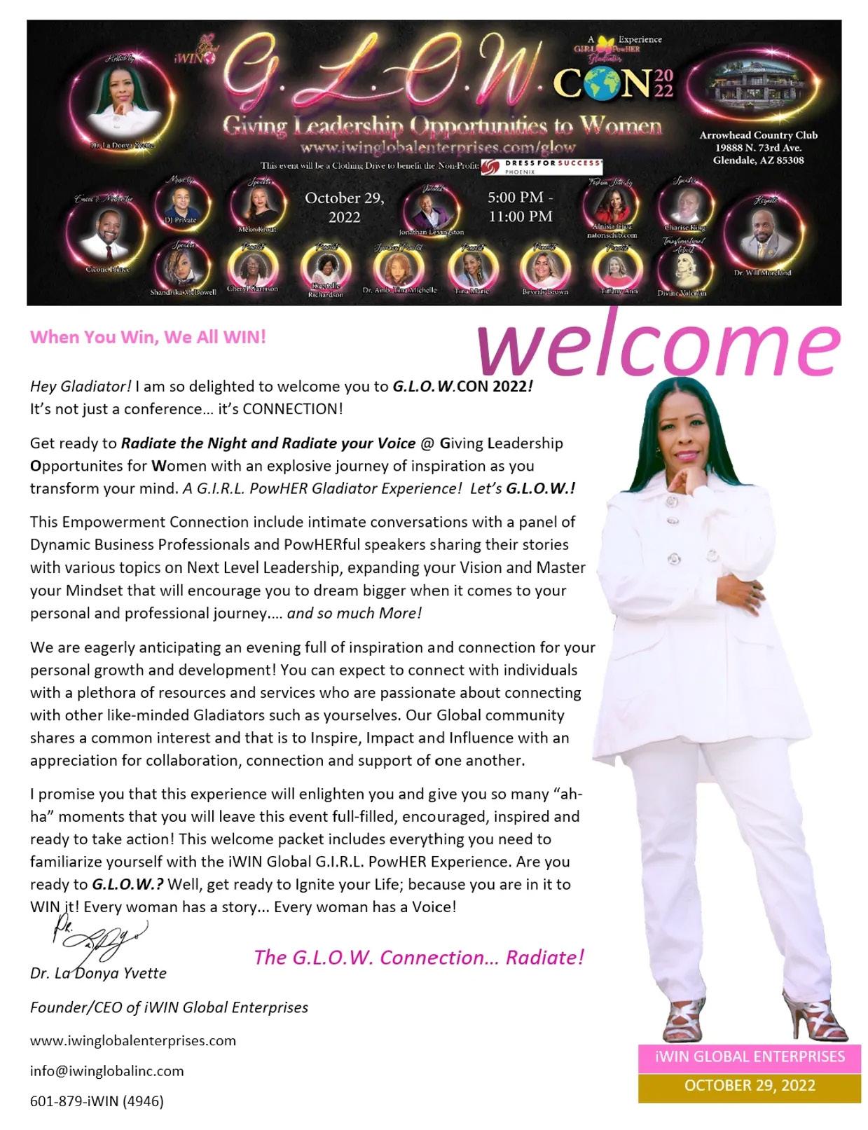 The Global Butterfly Princess, Dr. La Donya Yvette, is hosting the Brightest Thing in Phoenix with G.L.O.W. CON 2022! G.L.O.W. stand for, Giving Leadership Opportunities to Women and they will truly be doing that. Check out the link, the video, and the Speaker in their article!