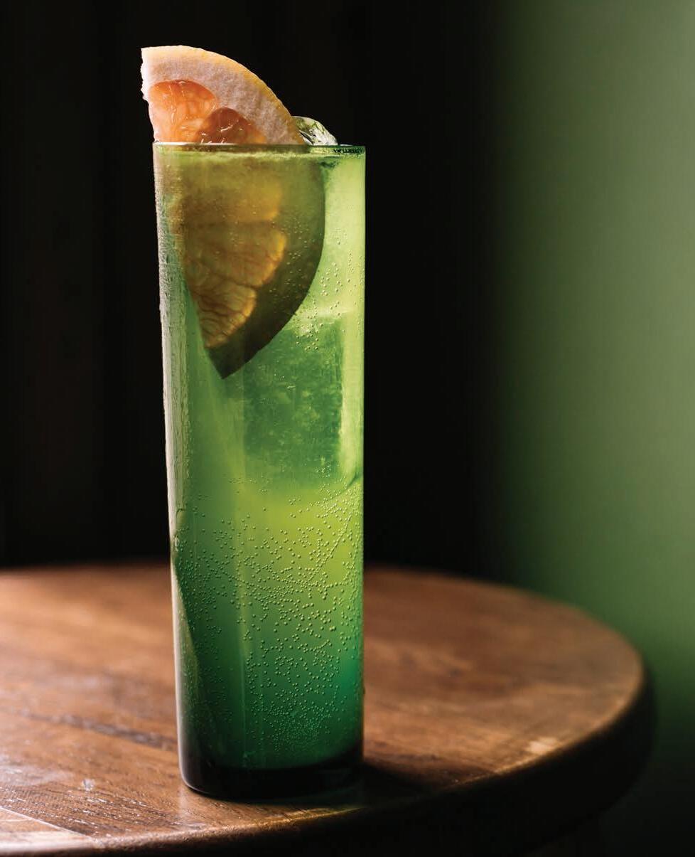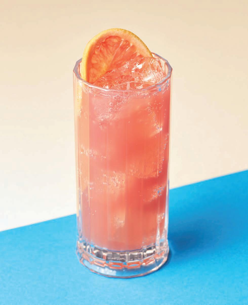 2 top with the grapefruit soda, stir again, and garnish with the grapefruit wheel.