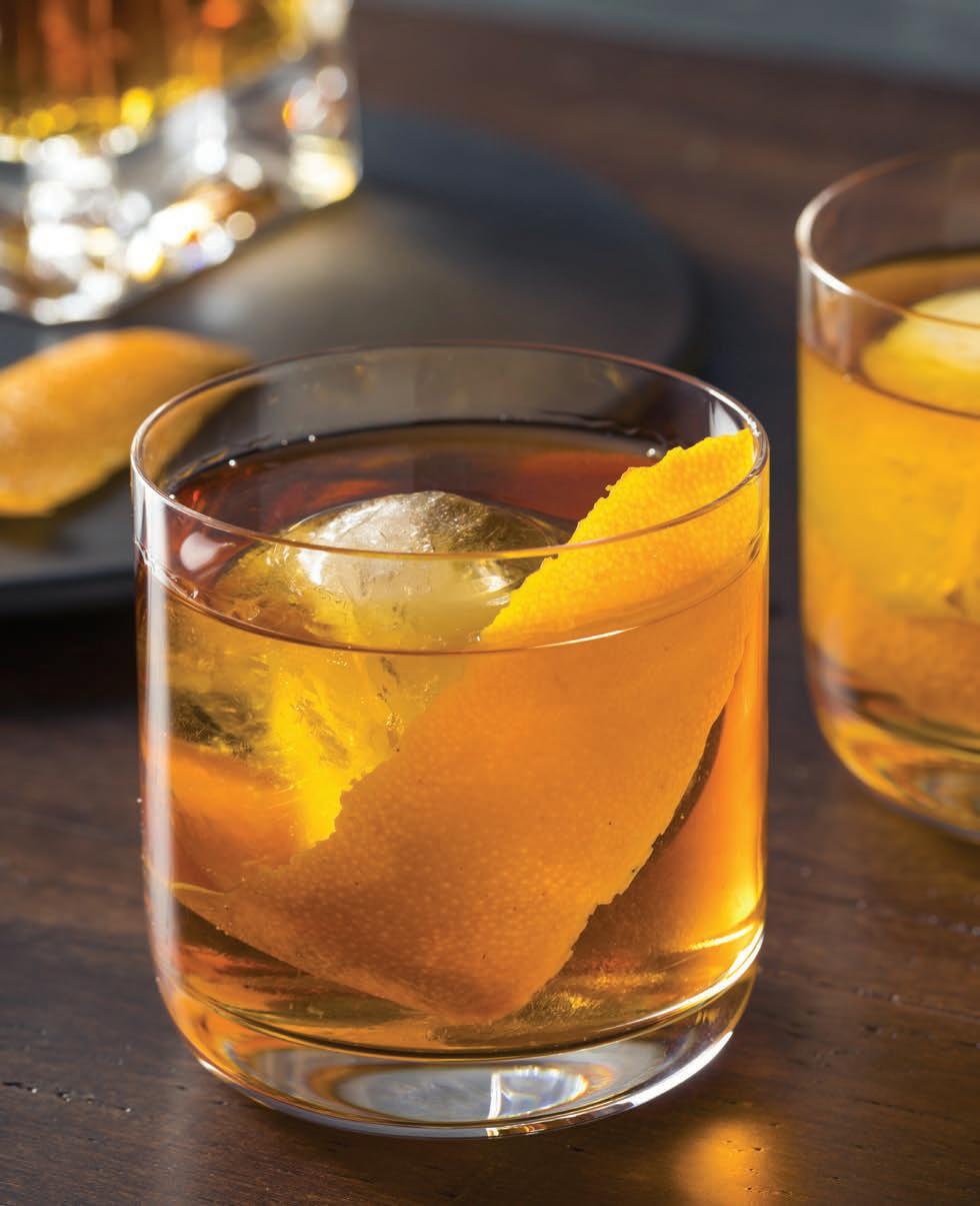 2 Add 1 to 2 medium ice cubes to the glass, stir for 30 to 45 seconds, and garnish with the lemon peel.