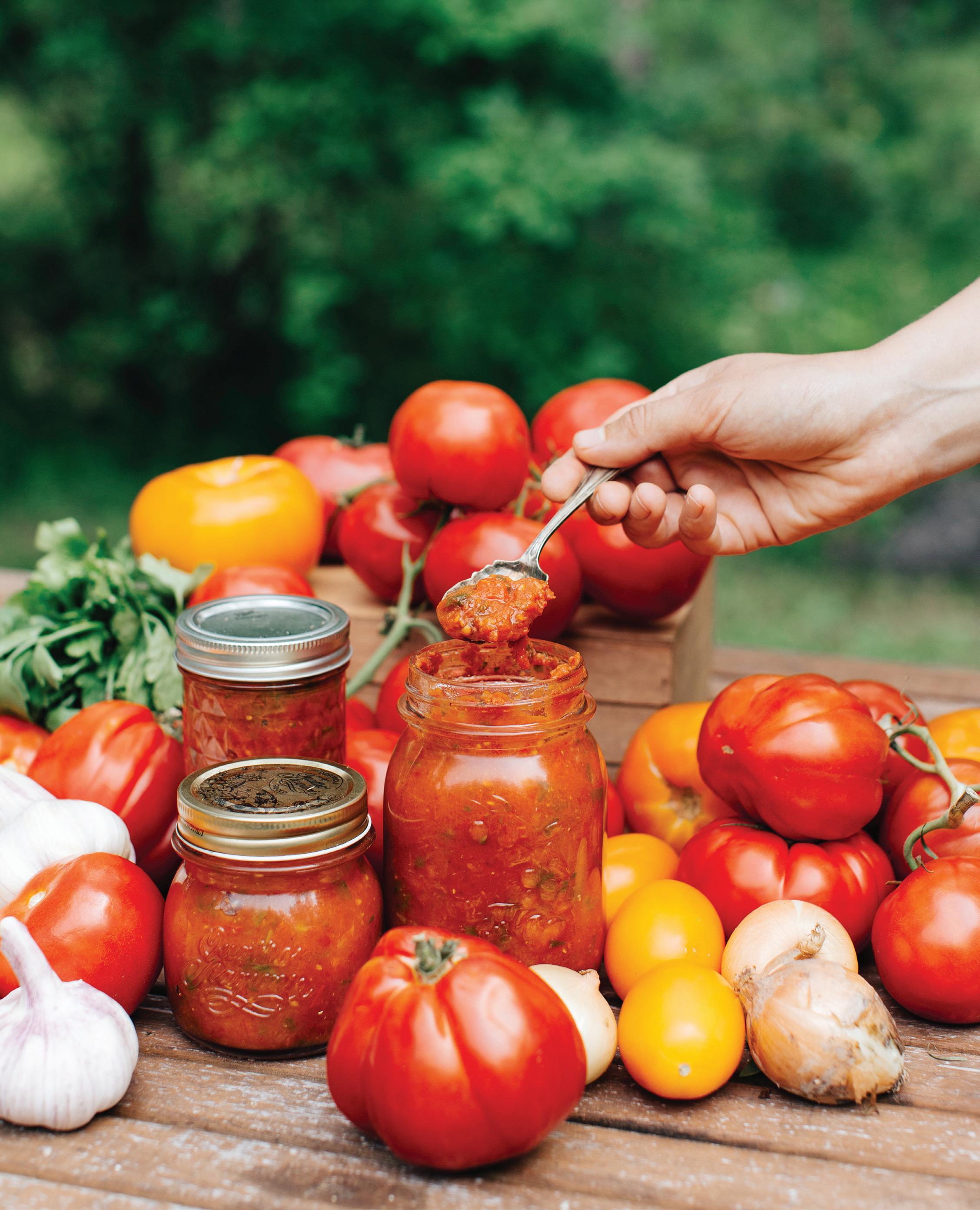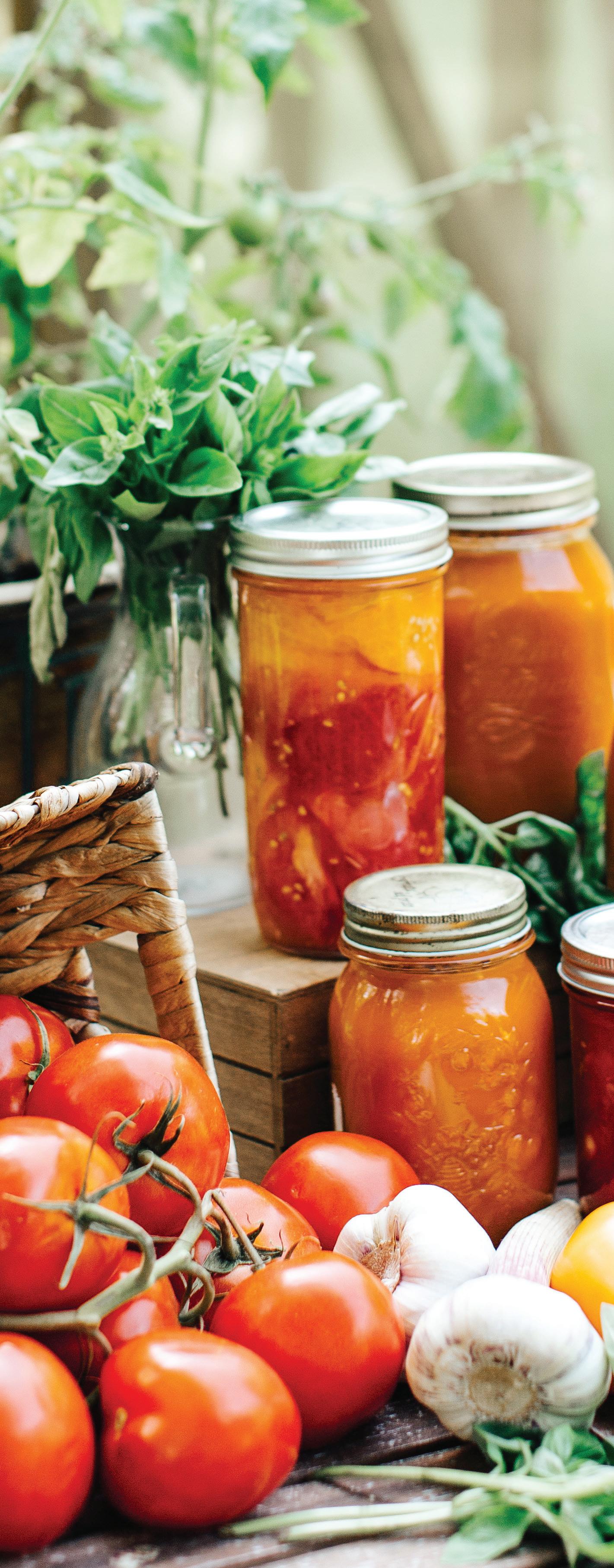 Batch processing is another way to streamline canning days. Grouping foods by preservation method makes the process smoother; focus on high-acid foods like jams and pickles one day and tackle lowacid foods like vegetables and meats on another day. Some foods lend themselves to a multistep approach. For example, when pressure-canning tomato sauce, consider simultaneously dehydrating the tomato skins to make tomato powder. Finding ways to integrate multiple preservation methods helps make the most of your harvest while maximizing efficiency.