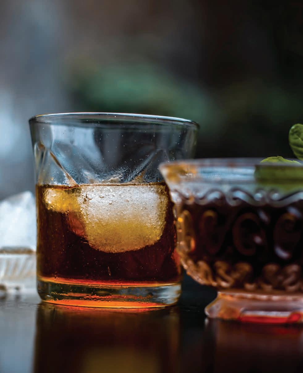 atrocity that is fruitcake. Inside these pages, you’ll find chapters to help you survive every up and down of the season. When you need to defrost after hauling in that overpriced Christmas tree, head straight to our chapter on hot drinks. These spiked delights will restore feeling to your hands and hopefully to your icy heart. When you need a companion to sit with through yet another round of holiday karaoke Shame, keep your spirits bright (pun intended) with our collection of festive sippers. When you need something to distract that one cousin who insists on talking politics over dinner, dazzle them with timeless, show-stopping classics. When you’re searching for the willpower to help you survive Grandma’s annual “Why aren’t you married yet?” interrogation, arm yourself with a strategically timed glass of bubbly. There’s even a chapter for the perfect party provisions in our batch cocktail chapter—because if your tree still isn’t lit, your guests definitely should be. With drinks that are equal parts delicious and festive, you’ll be so busy mixing, shaking, and toasting that you might even enjoy the holidays this year. Or at least make it through without texting your ex. Probably.