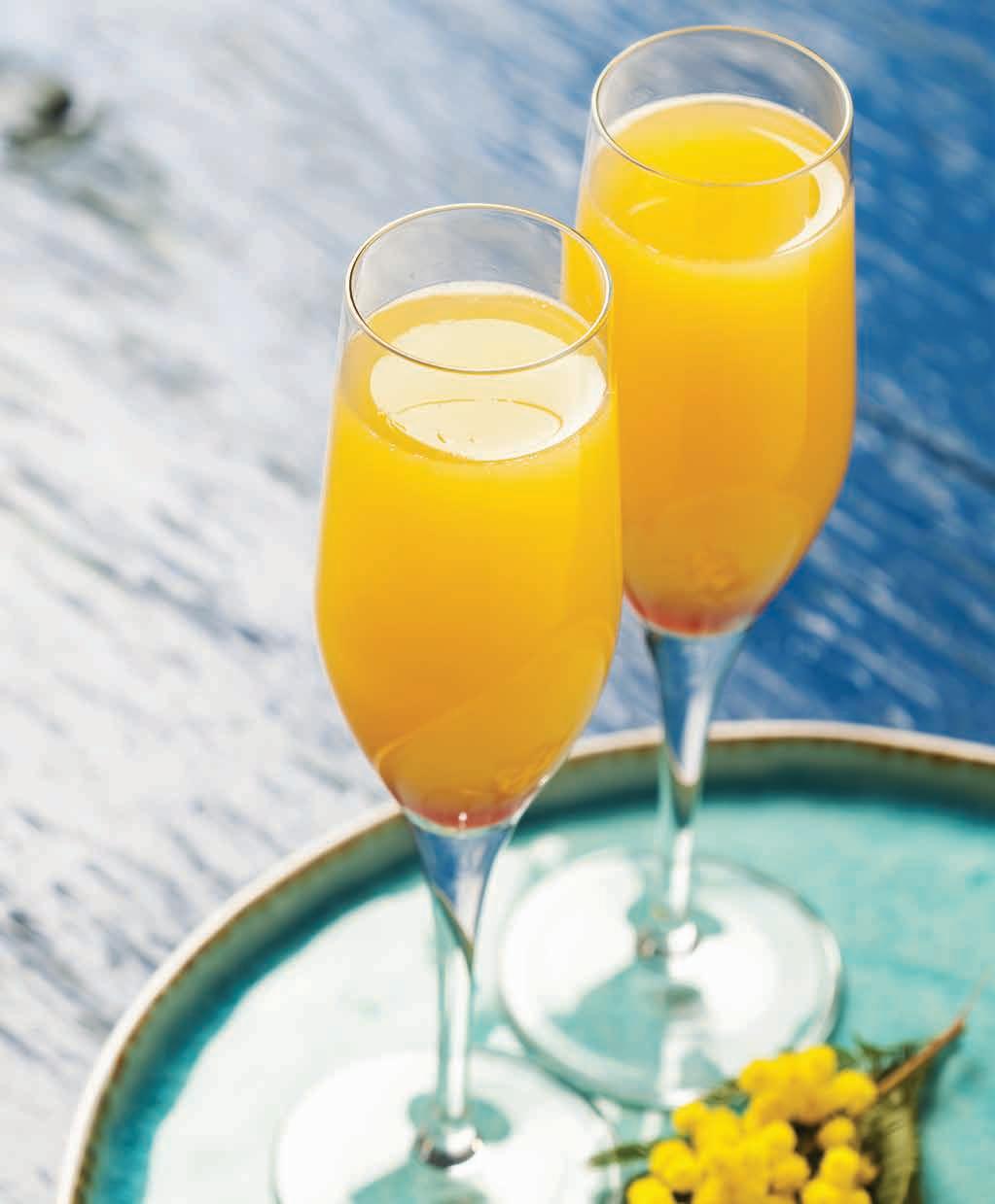 Place the remaining orange liqueur, Champagne, and orange juice in a large punch bowl, stir gently, and pour into the rimmed glasses.