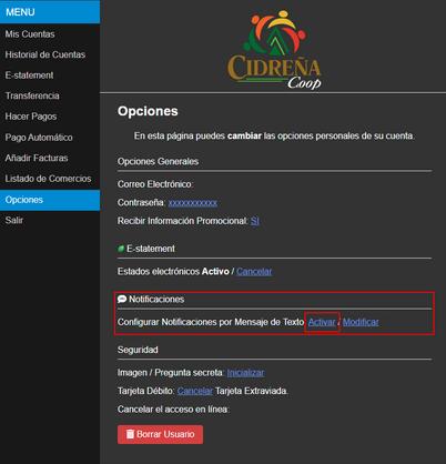 Al tener cuentas en Cidreña Coop y registrarte en Cidreña Coop en Casa puedes programar el recibir mensajes con actualizaciones de los movimientos de tus cuentas.