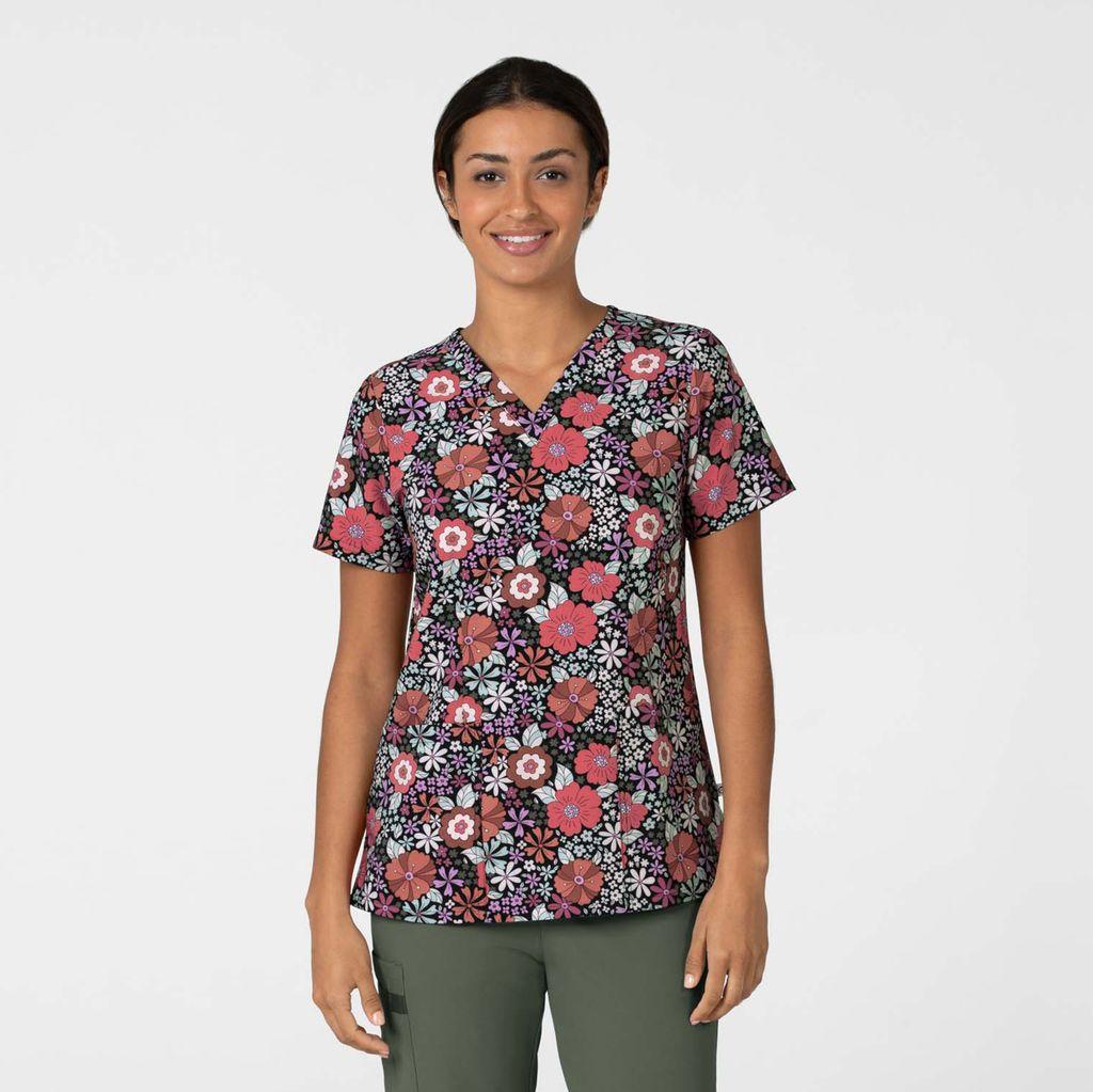 Zoe+Chloe V-Neck Border Print Scrub Top - Pastel Poppy