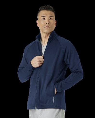 ◦ Mock neck with chin guard and zip front closure with "Easy-Snap" placket feature