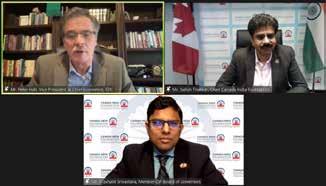 The challenges did not prevent CIF from being very productive in meeting its objectives. I want to briefly share highlights of what we achieved. Our most significant virtual event during this period was the 2021 Canada India Healthcare Summit, the 8th in the series of Canada India Forums organized by CIF since 2009. The Summit featured the first ever CIF Healthcare Innovation Awards, given to six young innovators, as well as announcement of a ground-breaking joint $ 1 million research initiative with the University Health Network – Toronto Rehab on Integrated Disease Management.