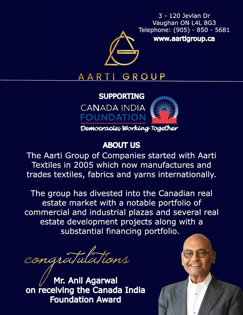 Thank you to the Canada India Foundation for its work in fostering and promoting Canada India relations, and to the many individuals who dedicated their time, energy, and hard work which makes this Award Gala possible. Themed “Canada India Partnership: Engage. Evolve. Elate.”, this event allows for the renewal of acquaintances and the building of new relationships as we celebrate past achievements and plan for future successes.