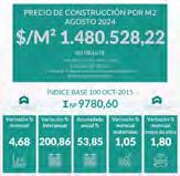 El Instituto Provincial de Estadística y Censos (Ipec) dio a conocer las cifras delÍndice de la Construcción, relevamiento que repasa los precios de insumos básicospara levantar una vivienda. Según esta medición, el valor del m2 construido en esteárea fue de $646.967,77 en agosto; con lo cual, construir una casa de 70 m2 costó$45, 3 M y una de 100 m2 promedió los $64,7 M.