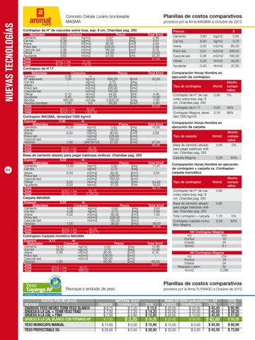 HH Contrapiso Magma m2 400 Puntos 16 Colado 24 hh/m2 0,1 HH Contrapiso Magma m2 250 Puntos 16 Colado 24 Raspado y term. 32 hh/m2 0,288
