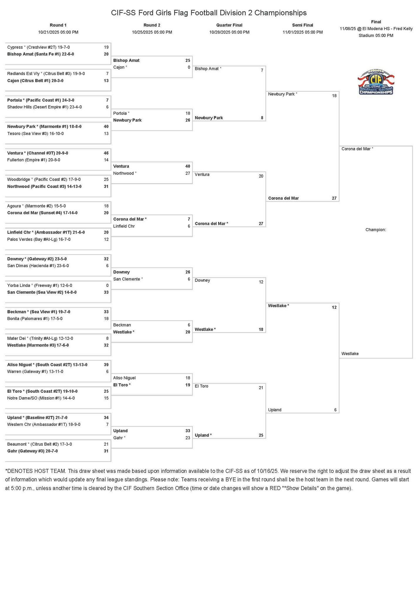 n behalf of the Executive Committee, extend our warmest congratulations to the talented udent-athletes, edicated coaches and staff, and supportive schools and ommunities on qualifying for the prestigious CIF Southern ection Championship Playoffs! This impressive achievement a testament to your unwavering commitment, erseverance, and teamwork Your hard work and etermination have truly paid off, and we couldn't be rouder!