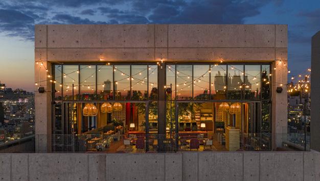 I n 2022, Lightstone debuted Moxy Lower East Side, a n ew 303room eclectic and stylish pleasure garden in the city ’s most electrifying neighborhood. Inspir ed by the Lower E ast Side ’s history as a crossroads of entertainment an d culture, and its present-day role as an incubator of innovation, th e hotel entices with endless amusements enlivened with the spirit of the absurd, among them, S ake No Hana, a modern Japanese restaurant; Silv er Lining, a piano lounge; The Highlight Room, a rooftop bar; The Fix, an all-day café and Tao Group Hospitalit y With interiors by Michaelis Boyd and Rockwell Group an d architecture by Stonehill Taylo r, th e hotel ’ s design feeds the cu riosity and dazzles the eye, la yering referenc es to the Lower East S ide ’s eclectic social history with the vibrancy of toda y C le verly designed rooms, tech-sa vvy amenities, co-w orking spaces, and flexib le meeting studios meet the needs of the pluggedin modern travele r, all at an affordab le price.