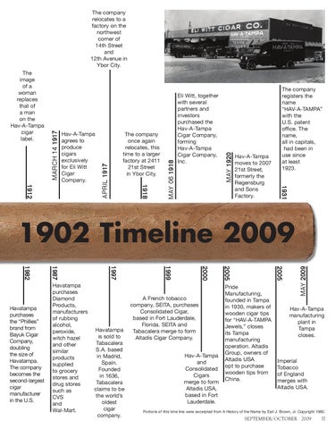 1902 Timeline 2009 Hav-A-Tampa manufacturing plant in Tampa closes.