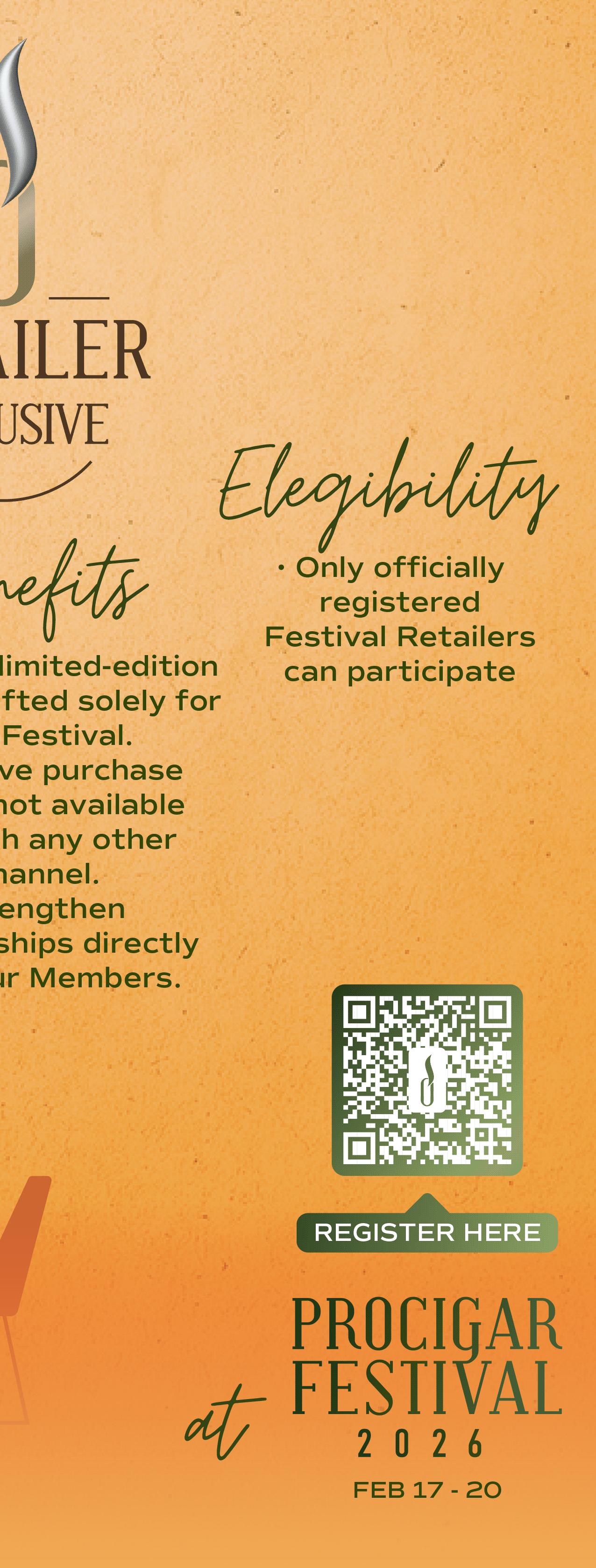 The Association of Dominican Cigar Manufacturers (PROCIGAR) is announced the launch of its Retailer Exclusive Program, a new initiative reserved specifically for retailers attending the upcoming Procigar Festival 2026, scheduled to take place from February 17th to 20th, 2026 in Santiago de Los Caballeros, Dominican Republic.