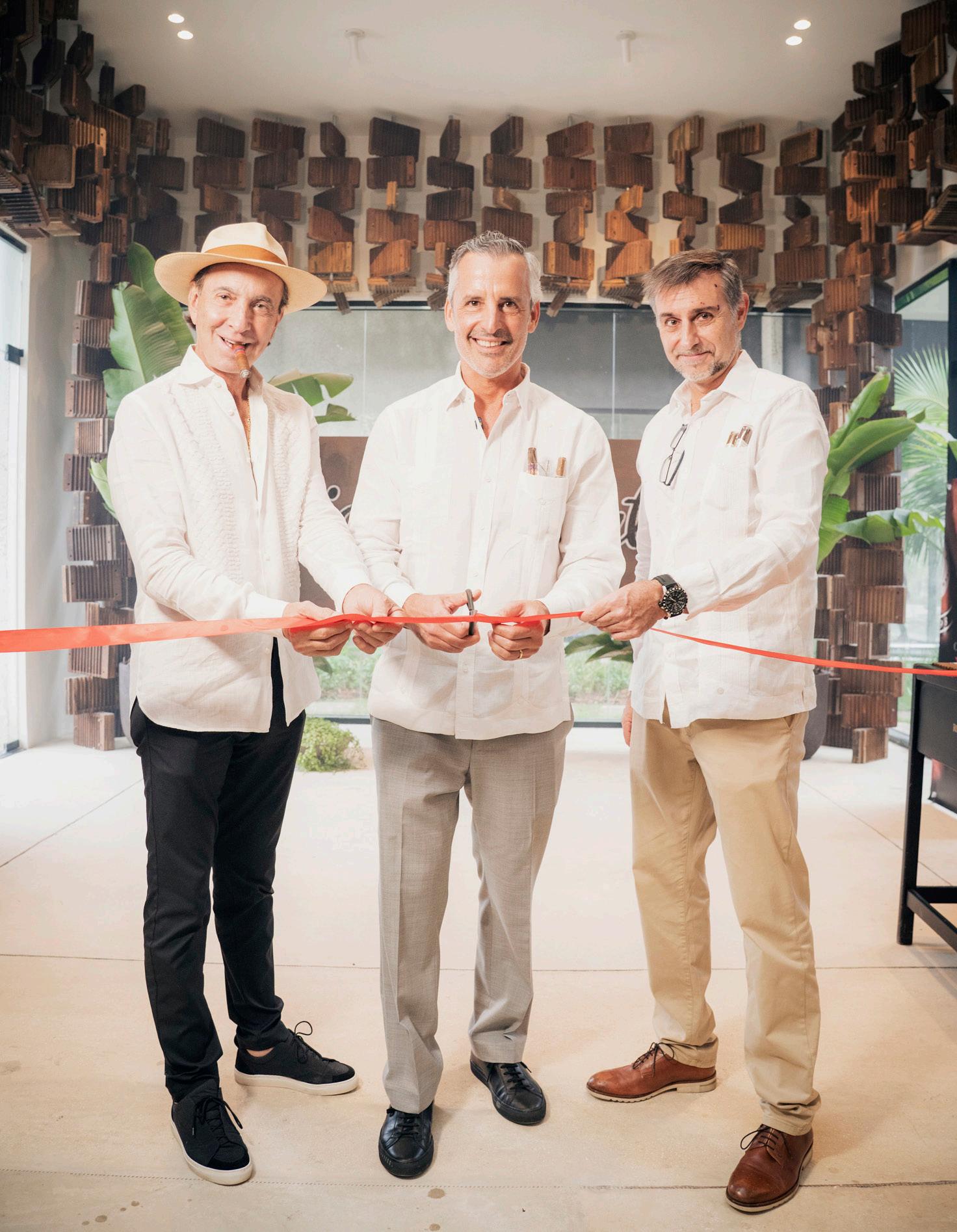 Corte de cinta a cargo de Rubén González, gerente general de Cigar Country, acompañado de Litto Gómez y Ricardo Nieto // Ribbon cutting ceremony in charge of the general manager of Cigar Country, accompanied by the president of La Flor Dominicana and the general manager of Tabacalera de García
