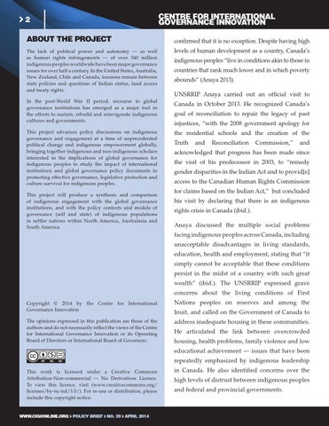 in Canada. He also identified concerns over the high levels of distrust between indigenous peoples and federal and provincial governments.
