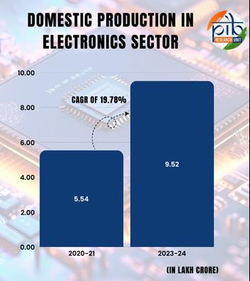Mitra, Shubha. 2025. “India’s Electronics Manufacturing Hits ₹9.52T In 2024, MeitY Recalls Milestones.” Electronics for You Business, March 27. www.electronicsforyou.biz/eb-specials/industryreport/indias-electronics-manufacturing-hits%e2%82%b99-52t-in-2024-meity-recalls-milestones/.