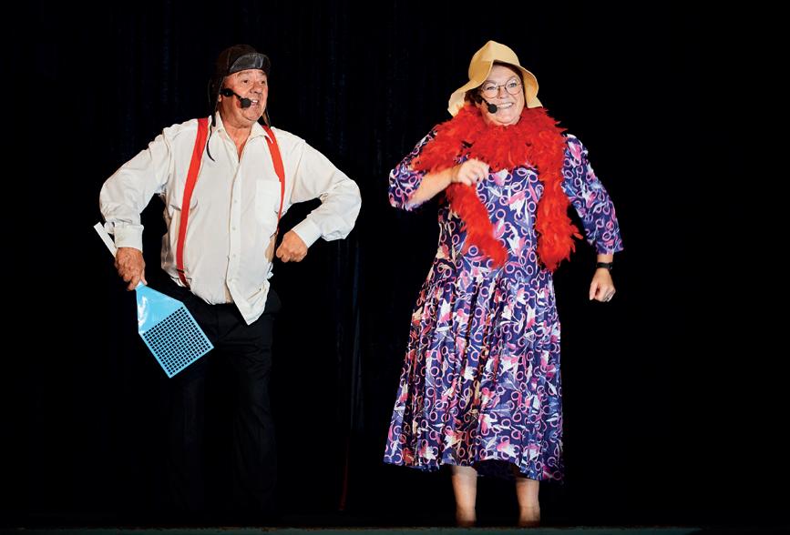 hjemme og sender dem på lydfil, som vi så øver til. Casper har spillet i mange år og har erfaring med revy, så vi har fået en fantastisk dygtig kapelmester, som I godt kan glæde jer til at lytte til. Bag scenen og sceneskift har vi god hjælp af Mette B. Christesen og Simone Beck Østergaard. Mette udnytter også sine kreative evner, når vi beder hende om at lave rekvisitter, og det er hun god til.
