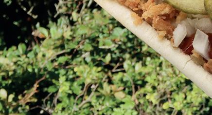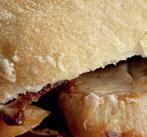 Naantabrød med /pulled pork, coleslaw og syltede rødløg.
