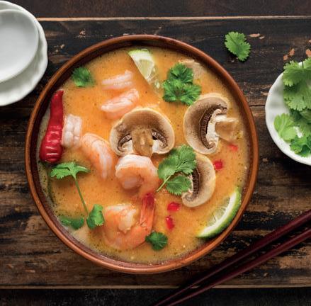 Famous Thai spicy rejesuppen med chili, lime, limeblad, galanga, citrongræs, champignons og koriander