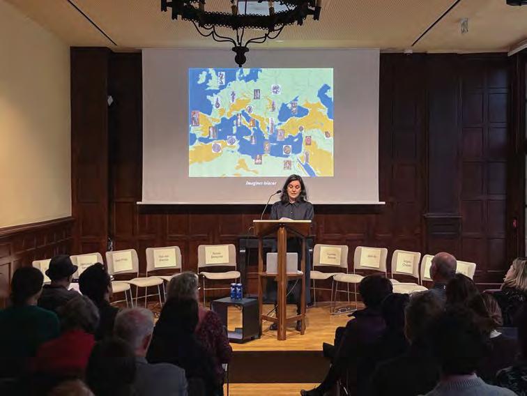 In a year when the world was convulsed by conflict and the universities were sucked into the maelstrom, the Institute for Ideas and Imagination ser ved as a reminder of the power of ideas and the imagination to bring people together and open up new horizons of possibility. The 2023–24 class of Fellows revealed as perhaps never before the Institute’s essential value which is to make possible not merely conversations across fields and genres but new insights and new forms of thought that emerge from workshops, discussions, and casual encounters through the year. The Fellowship united scholars of everything (it seemed) from ancient history and medieval literature to postwar social science and Les Parapluies de Cherbourg with poets, photographers, filmmakers, and artists whose work defied classification. As disciplines and boundaries dissolved, key themes emerged across the year: the way memory inheres in things; the multiple forms of the archive; the indispensable elusiveness of translation in understanding the world.