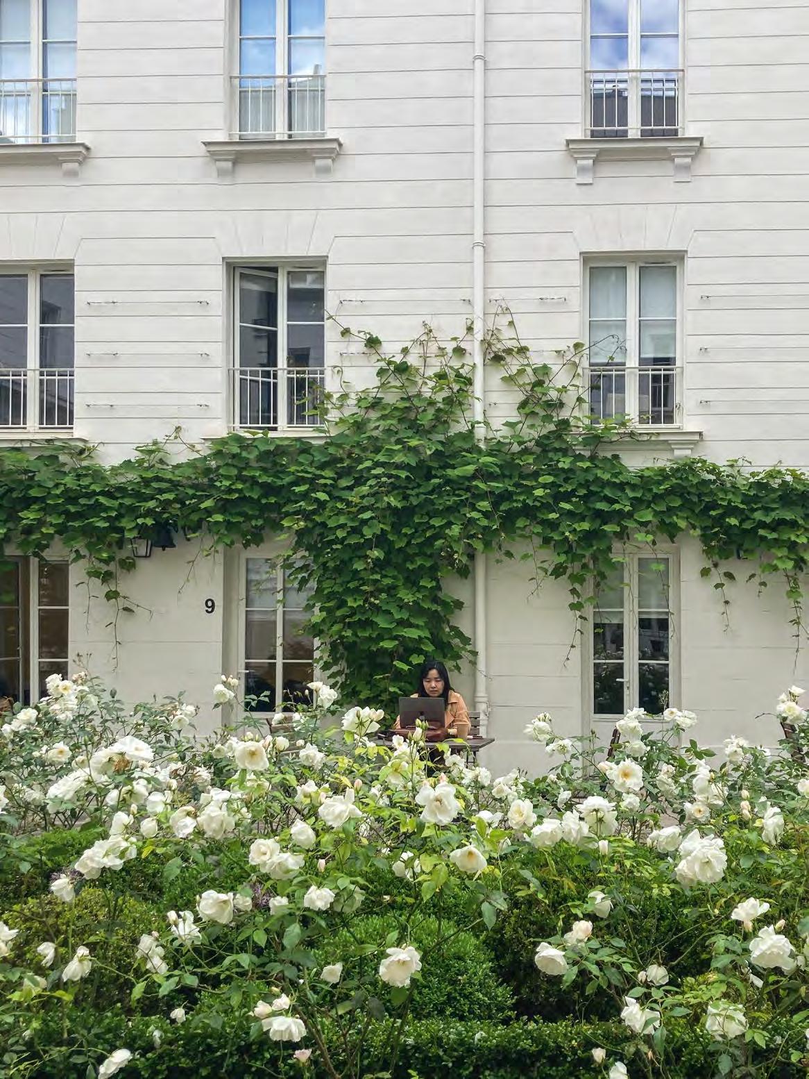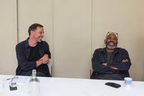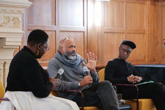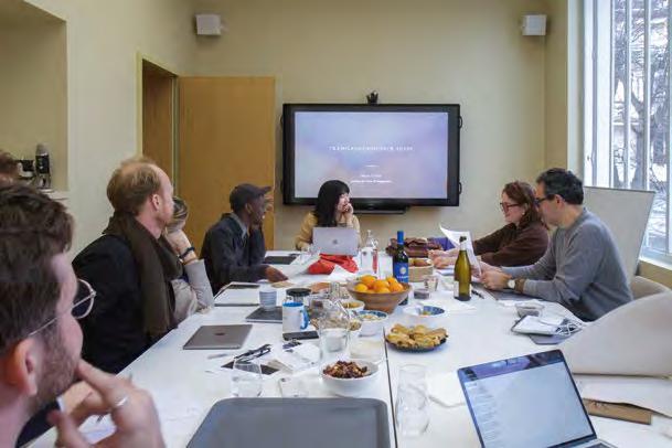 previous page clockwise David Scott invited the poet Jason Allen-Paisant for a public conversation in the Salle de Conférence at Reid Hall; Hannah Weaver and Yea Jung Park during a visit of the Fondation Cartier; the 2023-24 class of Fellows and friends.