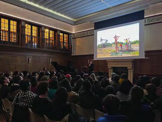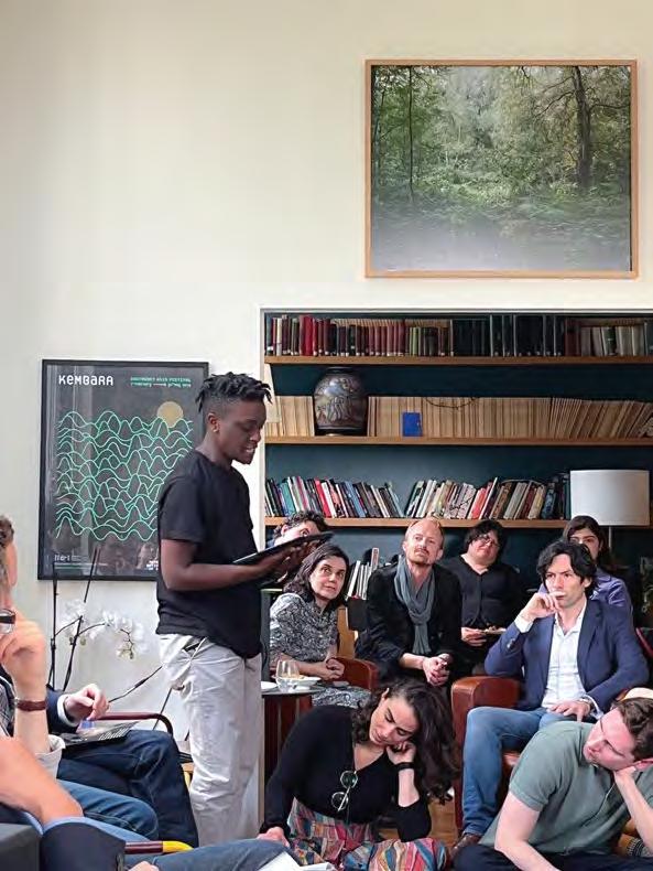 We received over 350 applications from more than fifty countries for the 2024–25 Fellowship class and have selected fourteen Fellows (listed at the end of this report). Once again, the short-term Faculty Visitor program attracted more applicants from Columbia faculty and researchers than ever before— over sixty. A grant from the university’s Center for Teaching and Learning has made podcasts a regular part of our outreach, facilitated by the creation of a dedicated new recording studio as part of the renovation of the Grande Salle Ginsberg-LeClerc. And the following artists were selected as the 2024–25 Displaced Writers in Residence: Maha Aldaya, a Palestinian visual artist, Doha Kalhout, a young poet and school te acher from Gaza, and Haman Mpadire, a dancer and choreographer from Uganda who has received many awards, including a Pina Bausch fellowship. Yasmine Seale will hold the 2024–25 II&I Visiting Professorship at Columbia University, an essential element in our projection of the Institute’s pedagogic work onto the Morningside campus.