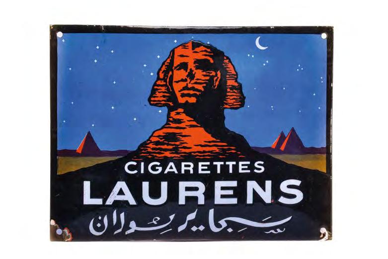 Enameled metal sign advertising a cigarettes brand from early 20th century Egypt—one of the objects Mohamed added to the British Museum collection and included in his forthcoming book Rebellious Things, which he wrote during the fellowship.